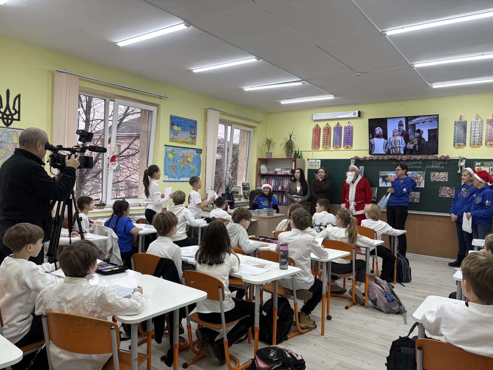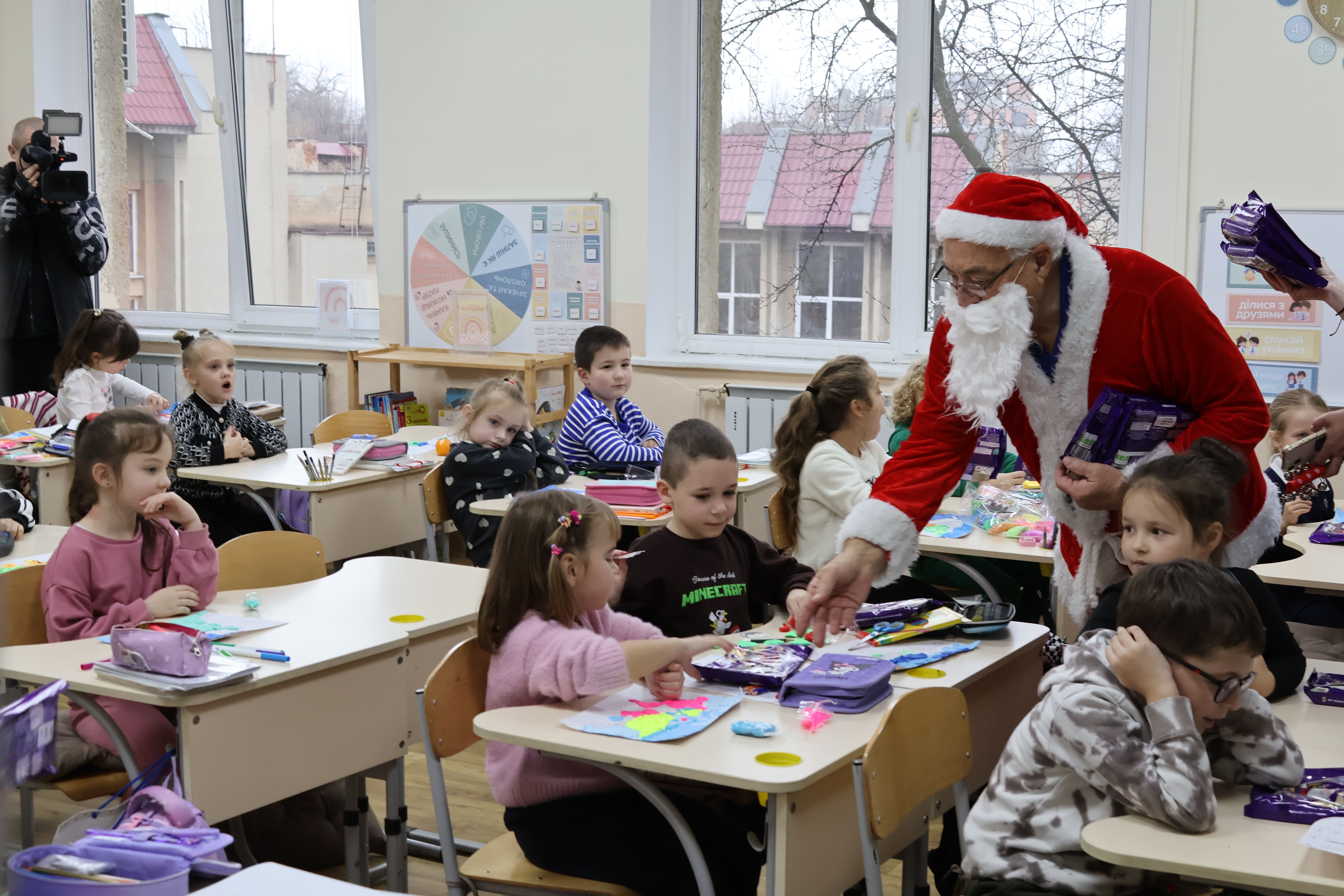 Учні 4-В класу з великою радістю підготували для волонтерів власноруч зроблені листівки з подяками та добрими побажаннями, а також виконали різдвяні колядки. Ці щирі виступи зворушили гостей до сліз і стали справжнім символом вдячності та взаємної підтримки.